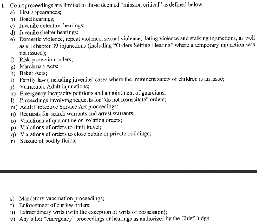 See Screenshot below from Florida 7th Judicial Circuit Court Ruling on COVID-19 Regarding Emergency Court Procedures