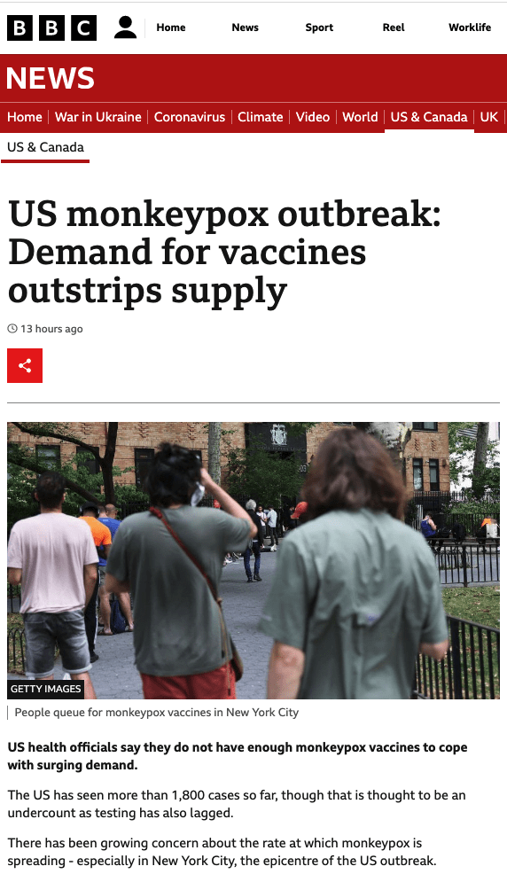 US monkeypox outbreak: Demand for vaccines outstrips supply