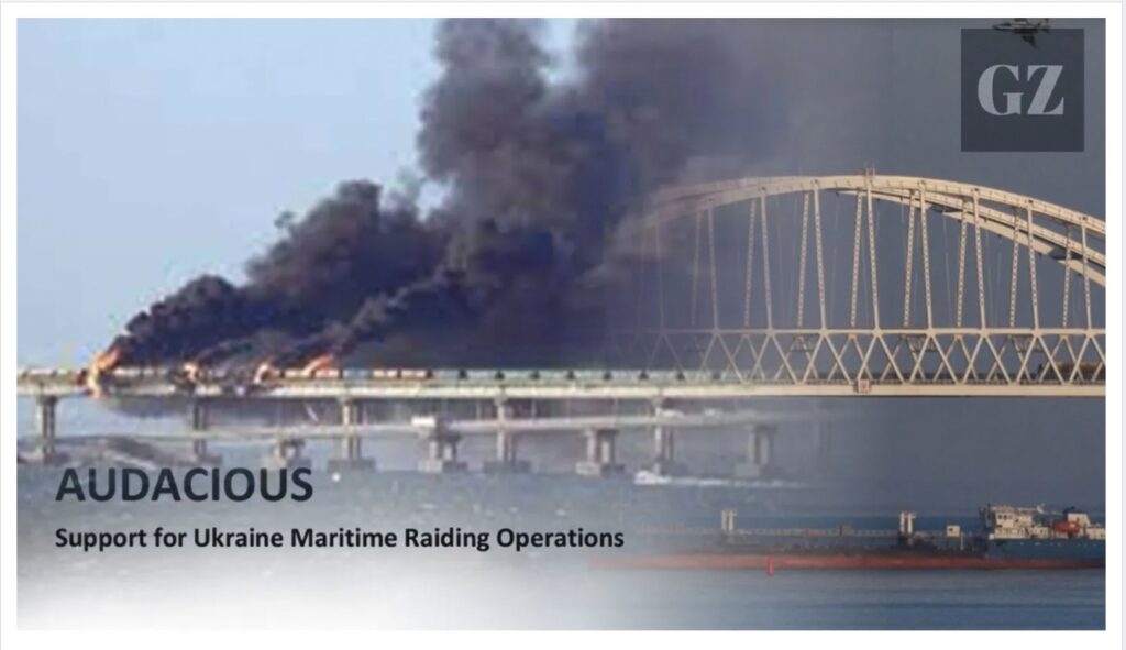 The Grayzone has obtained an April 2022 presentation drawn up for senior British intelligence officers hashing out an elaborate scheme to blow up Crimea’s Kerch Bridge with the involvement of specially trained Ukrainian soldiers. Almost six months after the plan was circulated, Kerch Bridge was attacked in an October 8th suicide bombing apparently overseen by Ukraine’s SBU intelligence services.
