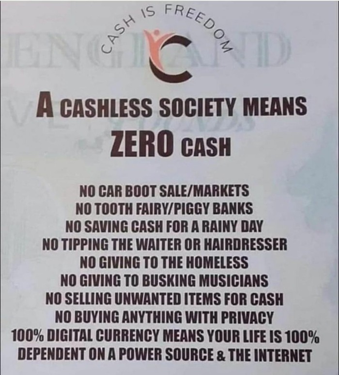 A CASHLESS SOCIETY is nothing but an unmitigated disaster for the citizenry.