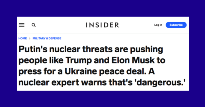 We see a prime example of this self-evidently idiotic narrative in a new Business Insider article titled “Putin’s nuclear threats are pushing people like Trump and Elon Musk to press for a Ukraine peace deal. A nuclear expert warns that’s ‘dangerous.’”