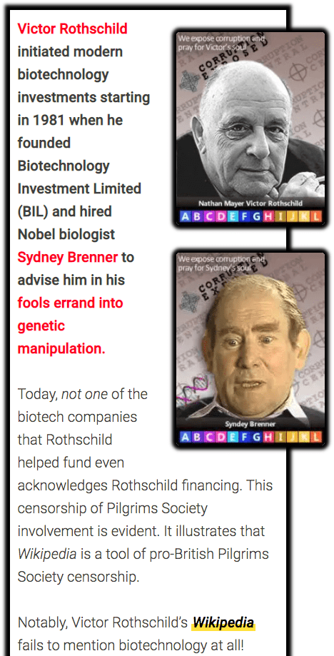 WIKIPEDIA HIDES ALL OF ROTHSCHILD’S MASSIVE INVOLVEMENT IN EARLY U.S. BIOTECH
