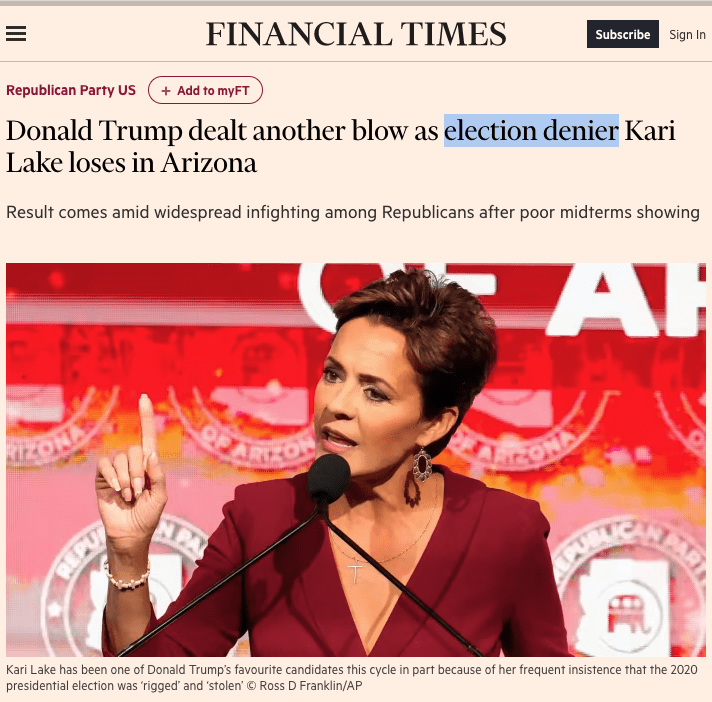 The Uniparty Establishment sees her as a hardcore ‘election denier’ — THAT’S WHY ! ! ! (see headline blue highlight below)