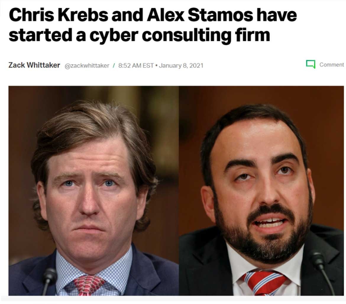 - CISA chief Chris Krebs founded a two-man firm with EIP Stanford Alex Stamos;
