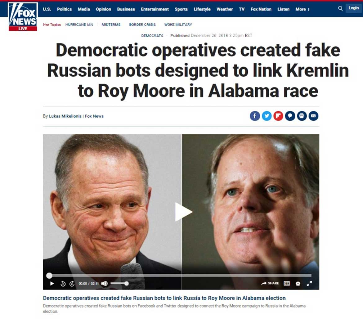 Note again the other report besides Graphika’s in that December 2018 Senate Intelligence Committee release was from Stanford Internet Observatory research manager Renee DiResta’s former social media “black ops” political hatchet firm, New Knowledge — who got busted creating artificial Russian bot accounts to discredit the Republican Senate candidate in the heat of a tightly contested race.