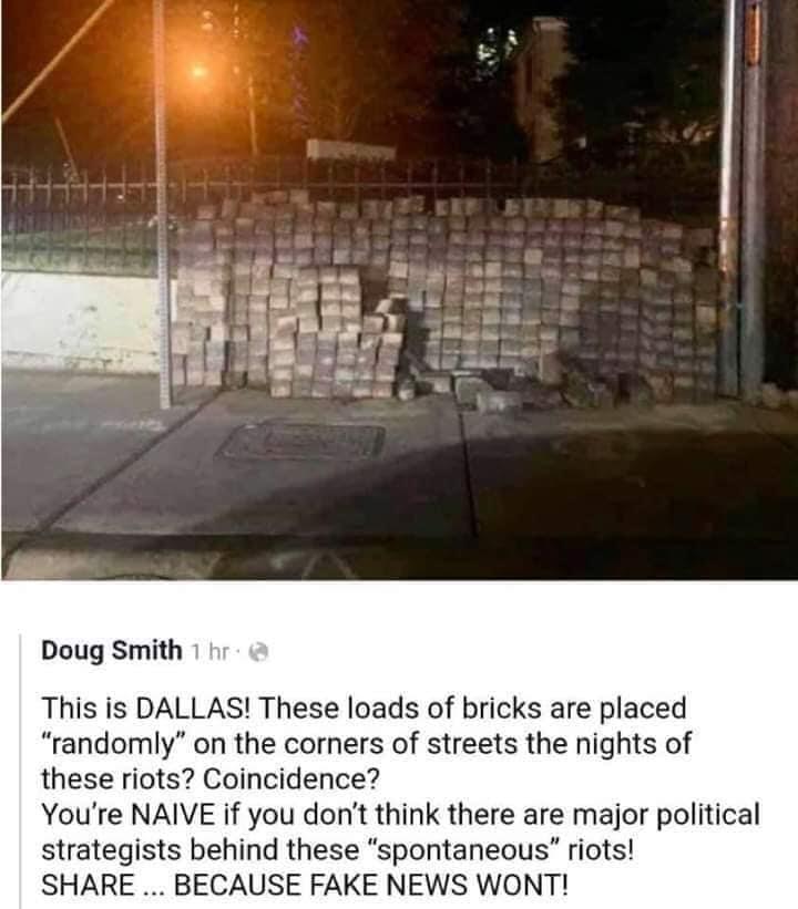 RIOTgate: Photo of another large stack of bricks in Dallas strategically placed at the staged riot sites