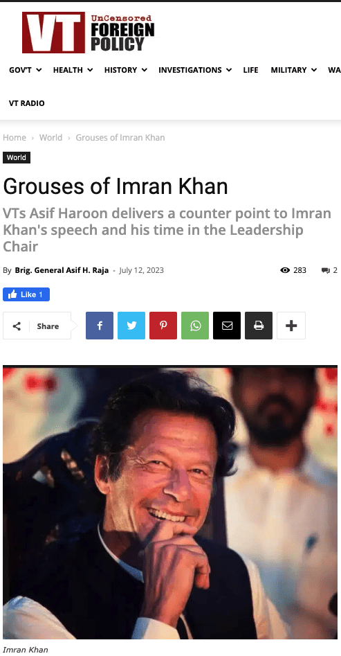 VT Foreign Policy Features an Absurd Hit Piece on the Peerlessly Heroic Imran Khan by a Predictably Vindictive Pakistani General