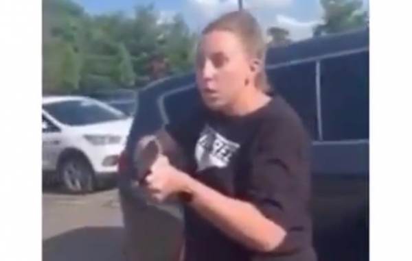 As the white couple backed up their vehicle to leave the parking lot, the black woman rushed behind the SUV to block them from leaving and accused them of ‘trying to hit her.’