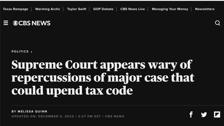The dispute before the justices, known as Moore v. U.S., involves the “mandatory repatriation tax,” a one-time tax targeting U.S. taxpayers who held shares of certain foreign corporations. Charles and Kathleen Moore, who invested in a company based in India more than 15 years ago, brought the case, arguing that the tax is impermissible under the 16th Amendment because it taxes unrealized gains.