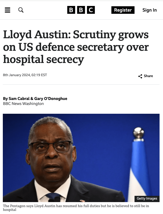 Criticism of US Defence Secretary Lloyd Austin is growing, after it emerged his deputy was unaware that he was in hospital despite assuming some of his responsibilities.
