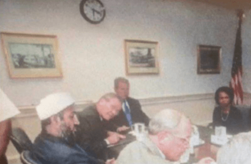 PHOTO BOMB! Osama bin Laden (aka Tim Osman), Donald Rumsfeld, George W Bush, Dick Cheney & Condoleezza Rice……(but it’s a photoshopped pic)