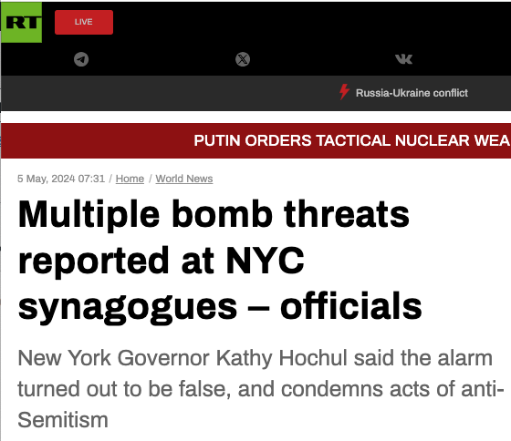 See all these patently fake bomb threats called in from Tel Aviv in order to drum up public support for free speech-destroying antisemitism laws.