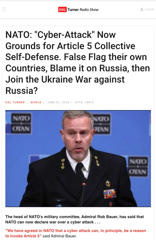 ___ https://halturnerradioshow.com/index.php/news-selections/world-news/nato-cyber-attack-now-grounds-for-article-5-collective-self-defense-false-flag-their-own-countries-blame-it-on-russia-then-join-the-ukraine-war-against-russia