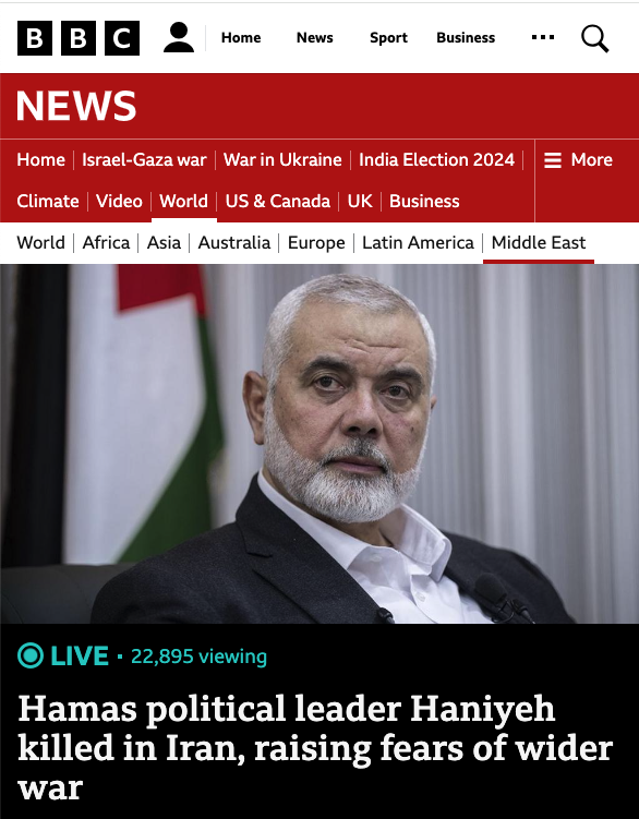 Israel Hellbent On War With Iran After Assassinating Hamas Leader In Tehran