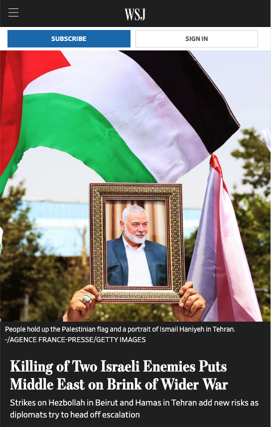 https://www.wsj.com/world/middle-east/two-enemies-of-israel-are-killed-and-the-mideast-tilts-on-the-brink-of-wider-war-8545bae9