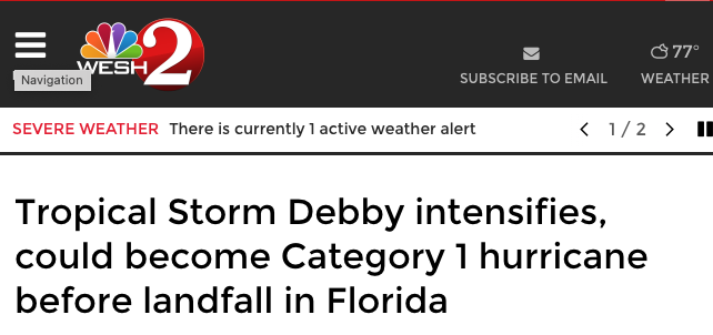 PREDICTIVE PROGRAMMING: Watch how the NWO weather warriors first predict the tracking and intensity Tropical Storm Debby…..