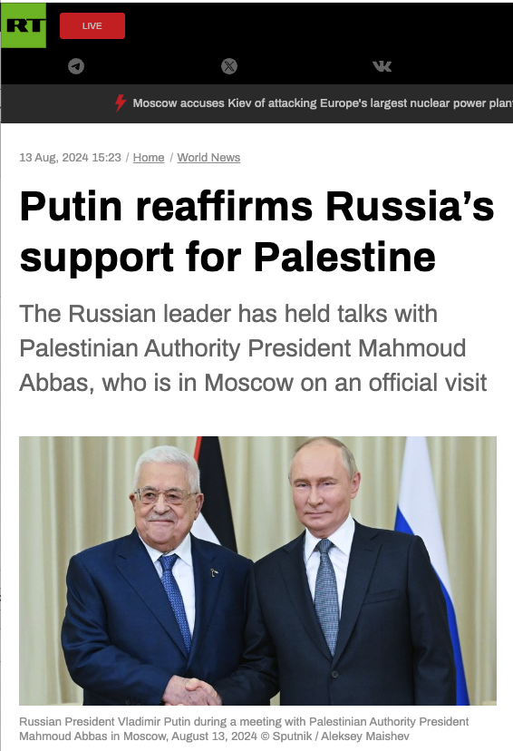 Putin reaffirms Russia’s support for Palestine