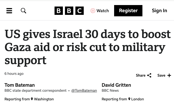 The US has written to Israel, giving it 30 days to boost humanitarian aid access in Gaza or risk having some US military assistance cut off.