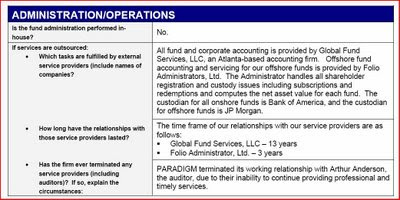 That in itself is a problem. Paradigm pitches itself as a highly sophisticated fund of hedge funds with superb due diligence processes. That they did not suspect that Ponta Negra was a fraud almost immediately suggests that their marketing spiel (excellence in due diligence) is only marketing spiel.