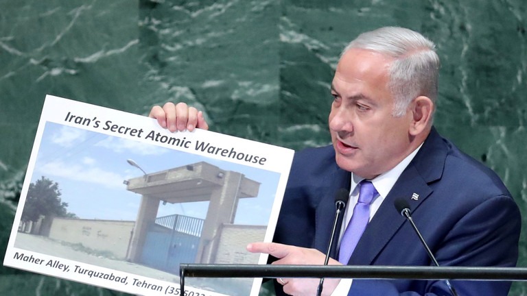The Israeli PM was also front and center in the run-up to the most recent Iraq War, warning the US Congress in 2002 that Saddam Hussein had “weapons of mass destruction” – including pursuing atomic bombs – which turned out not to exist at all.