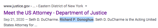 Also, be aware that Donohue’s son was named Richard K. Donahue, Jr. NOT Richard P. Donoghue who just got appointed as the Deputy Attorney General.