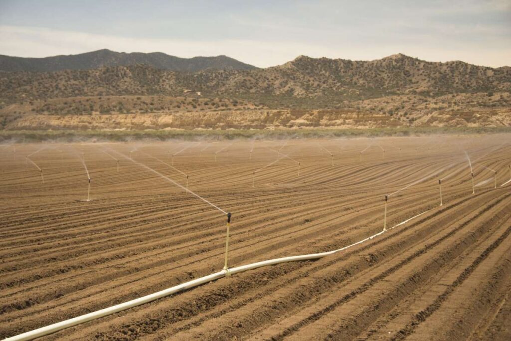 Irrigating fields on the edge of the desert in the Cuyama Valley.