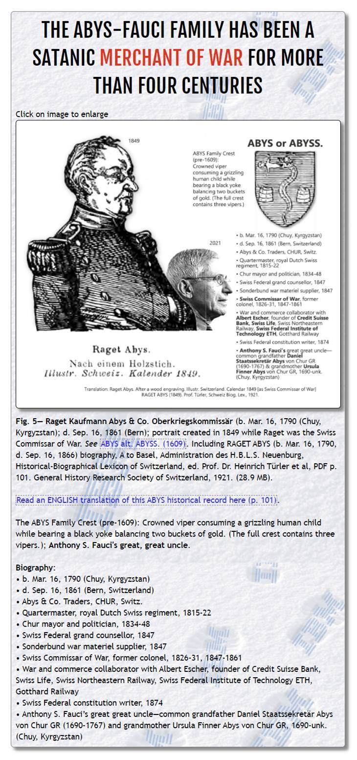 The FAUCI-ABYS Family has been a Satanic Merchant of War for more than Four Centuries