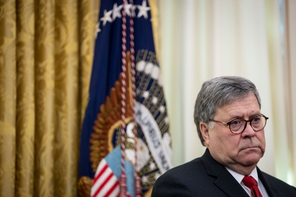 WASHINGTON, DC – NOVEMBER 26: U.S. Attorney General William Barr as U.S. President Donald Trump holds a signing ceremony for an executive order establishing the Task Force on Missing and Murdered American Indians and Alaska Natives, in the Oval Office of the White House on November 26, 2019 in Washington, DC. Attorney General Barr recently announced the initiative on a trip to Montana where he met with Confederated Salish Kootenai Tribe leaders. (Photo by Drew Angerer/Getty Images)