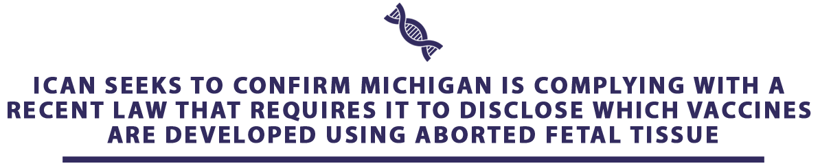 ICAN wrote to Michigan’s Department of Health and Human Services to request, as required by law, a copy of the documents by which COVID-19 vaccine recipients are being provided information regarding the use of fetal tissue or cells in developing these vaccines.