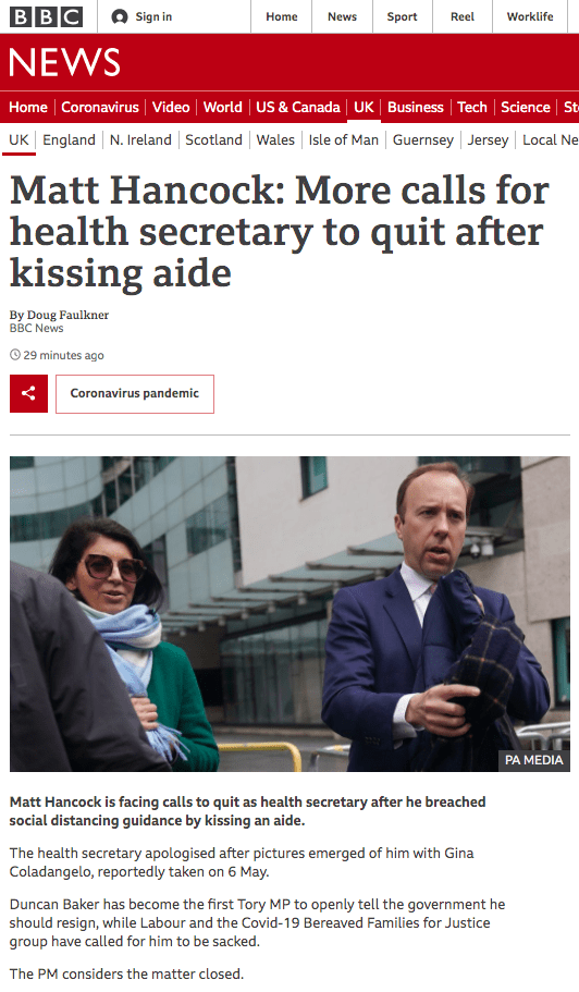 How is the UK Health Secretary still in office after flagrantly violating Covid rules by kissing aide?!