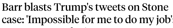 “The President has never asked me to do anything in a criminal case.” A.G. Barr This doesn’t mean that I do not have, as President, the legal right to do so, I do, but I have so far chosen not to!