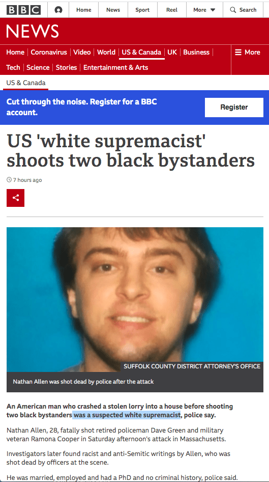 See how the British tabloids are always publishing fake news about American “SUSPECTED” white supremacists.