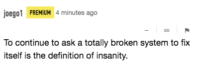 “To continue to ask a totally broken system to fix itself is the definition of insanity.” — Joego1