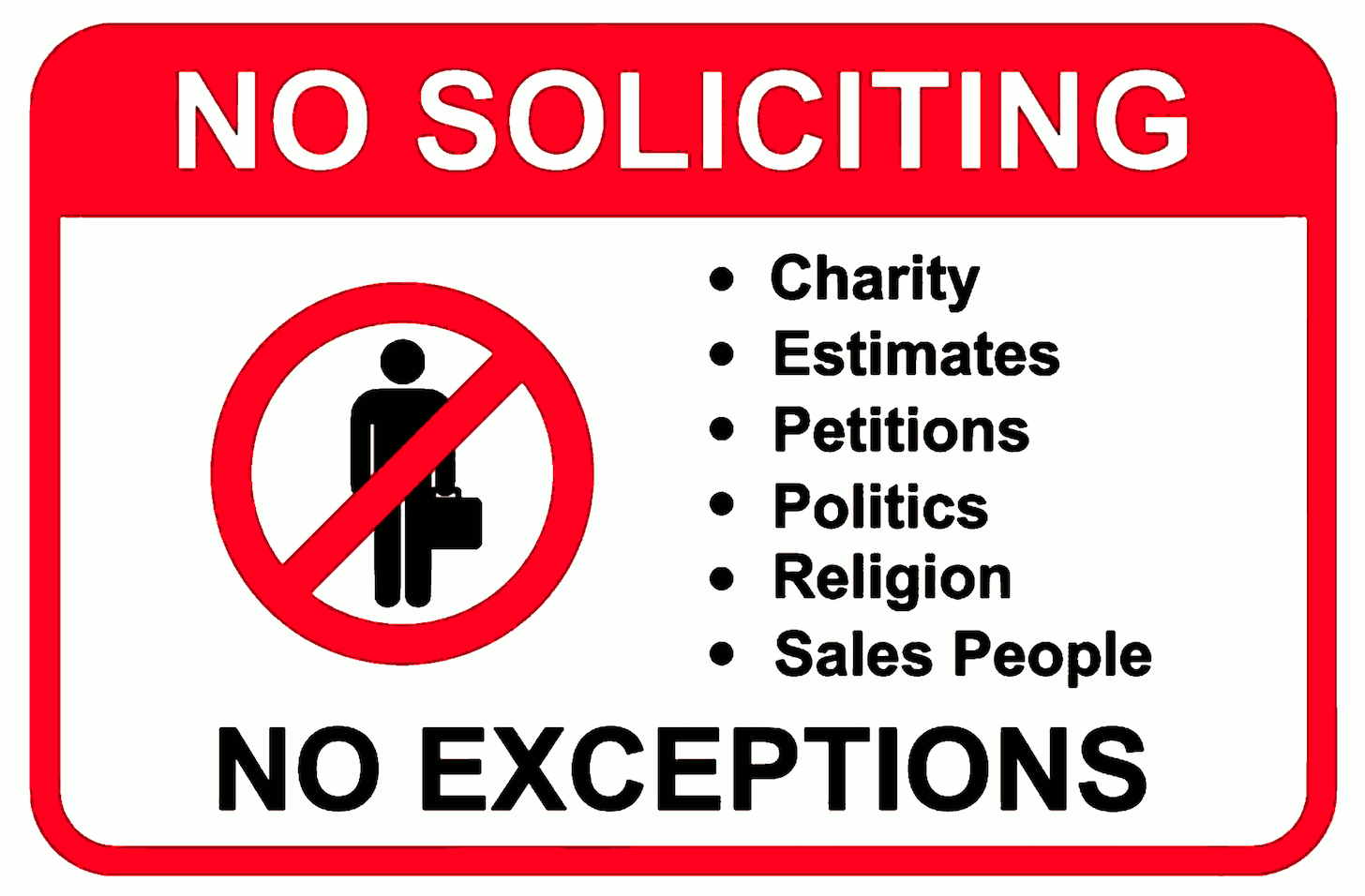 When the vax goons come just say “I do not talk to salesmen, READ THE SIGN. NO SOLICITING” If they persist point to “NO EXCEPTIONS.” If they keep pushing say absolutely nothing at all, just slam the door in their face.