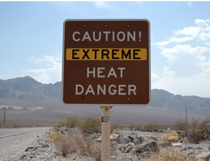 A sign warns of extreme heat in Death Valley, California, U.S., July 11, 2021. REUTERS/Bridget Bennett