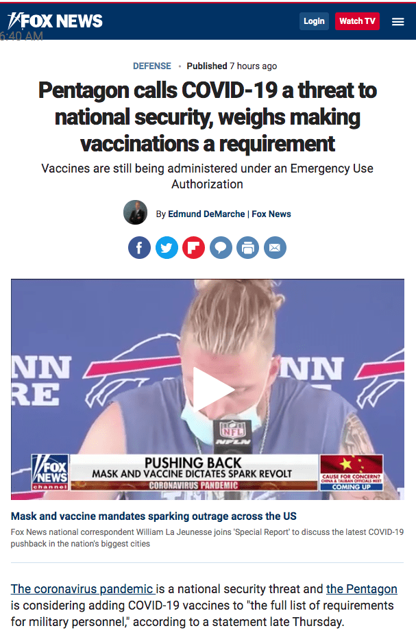 https://www.foxnews.com/politics/pentagon-call-covid-19-a-threat-to-national-security-weighs-making-vaccinations-a-requirement