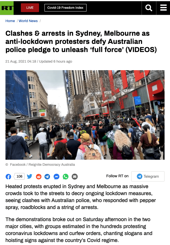 Aussie Cops Pledge To Unleash “Full Force” As Large Anti-Lockdown Protests Turn Violent