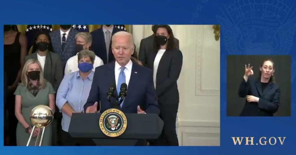 “My two daughters were born, that you can do anything a man do,” Biden said on Monday. “It’s one thing for somebody say that and keep pounding that in the head of your five granddaughters as well, but to, guess what, until they see it until they watch, it becomes real then.”