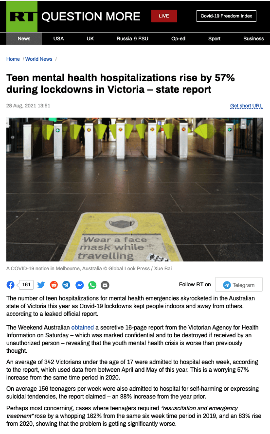 Australia is okay with teenager mental health hospitalizations due to highly restrictive Covid lockdowns