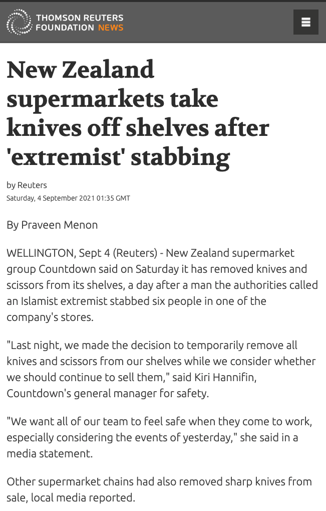 Yes, New Zealand supermarkets just took knives off the shelves because of a staffing!