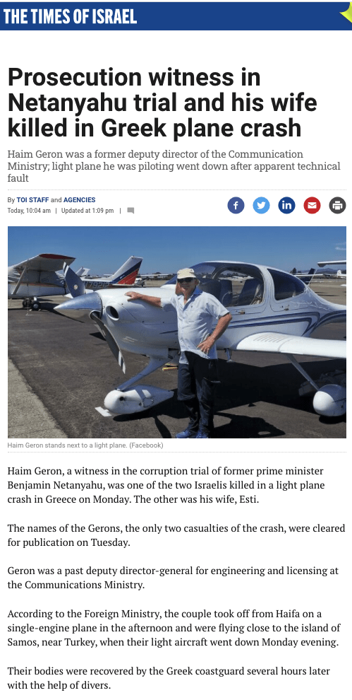 https://www.timesofisrael.com/prosecution-witness-in-netanyahu-trial-and-his-wife-killed-in-greek-plane-crash/