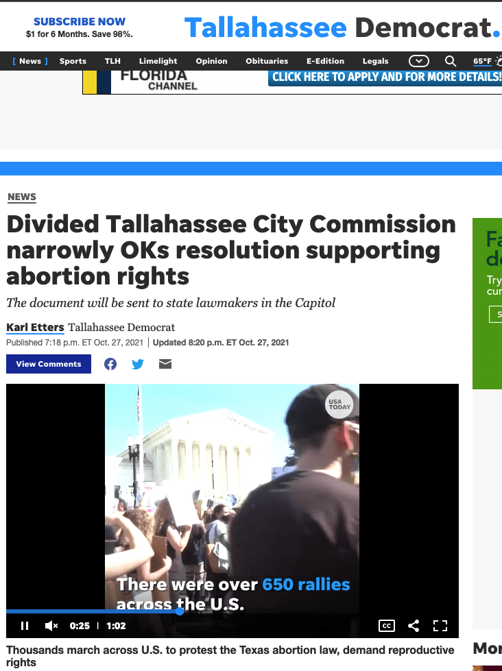 WOW! Tallahassee Florida Attempts to Preempt Any State-Sponsored Anti-Abortion Legislation