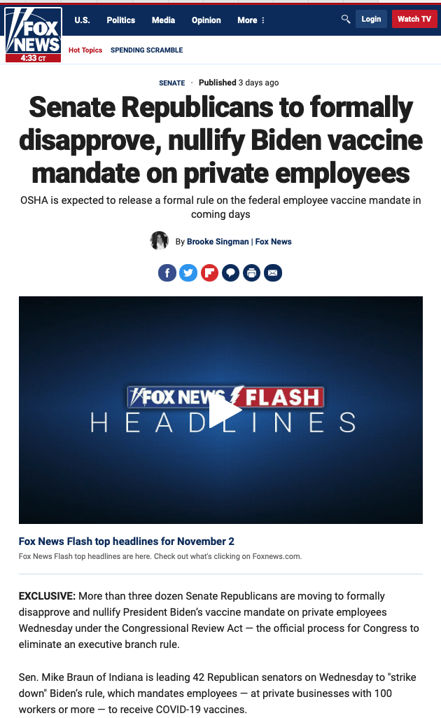 Senate Republicans to formally disapprove, nullify Biden vaccine mandate on private employees