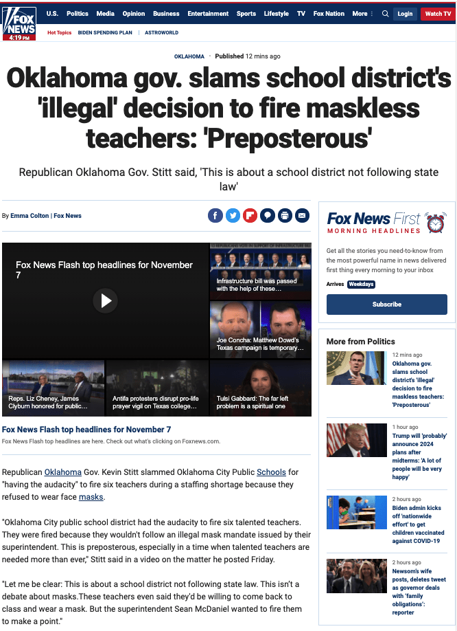 ___ https://www.foxnews.com/politics/oklahoma-governor-stitt-public-school-district-fire-maskless-teachers