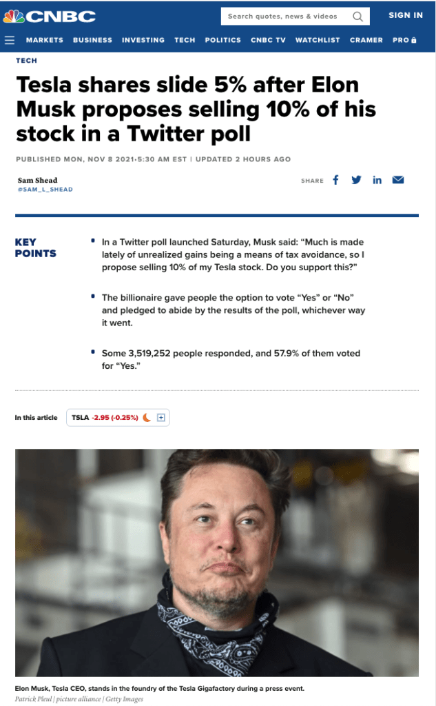 https://www.cnbc.com/2021/11/08/tesla-slides-5percent-after-elon-musk-asks-twitter-if-he-should-sell-stock.html