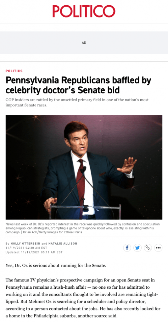 https://www.politico.com/news/2021/11/19/pennsylvania-republicans-dr-oz-senate-bid-523023