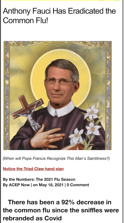 Saint Anthony Fauci Has Eradicated the Common Flu