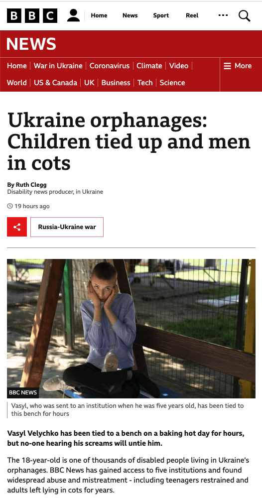 Children tied up and men left in cots for years found in Ukraine orphanages