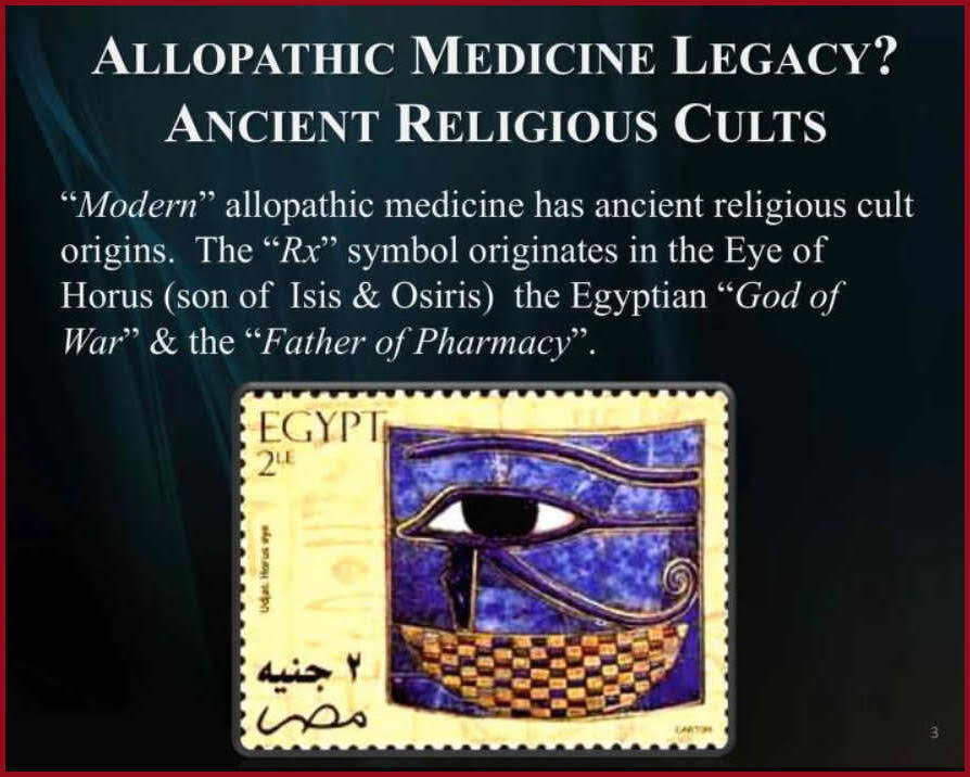 Founded on Egyptian Superstition and Religion – Eye of Horus (Udjat) — Rx symbol originates in the Eye of Horus (Son of Isis and Osiris) the Egyptian god of WAR and “Father of Pharmacy. — Video: https://tinyurl.com/2p92nmcb