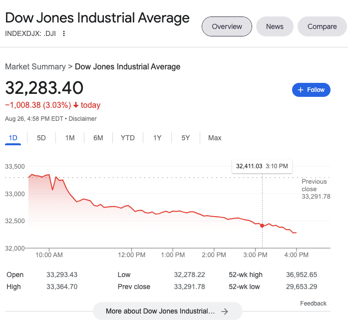 DJIA Loses Over 1000 Points Today After FED Chair Tells The Truth